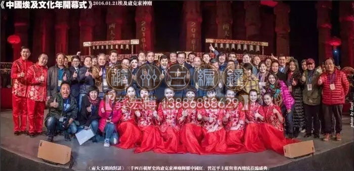 《兩大文明的對(duì)話》三千四百載歷史的盧克索神廟輝耀中國紅,彩排演出結(jié)束后演職人員合影紀(jì)念。